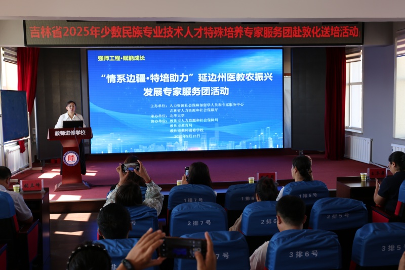 9月13日下午,由吉林省人力资源和社会保障部留学人员和专家服务中心主办,北华大学承办,敦化市人力资源和社会保障局、敦化市教育局及教师进修学校协办的“情系边疆·特培助力”延边州医教农振兴发展专家服务团活动,在敦化市教师进修学校四楼会议室成功举办。全市各中小学(幼儿园)教学领导、骨干教师代表以及教师进修学校相关教研室教研员参加了本次培训。